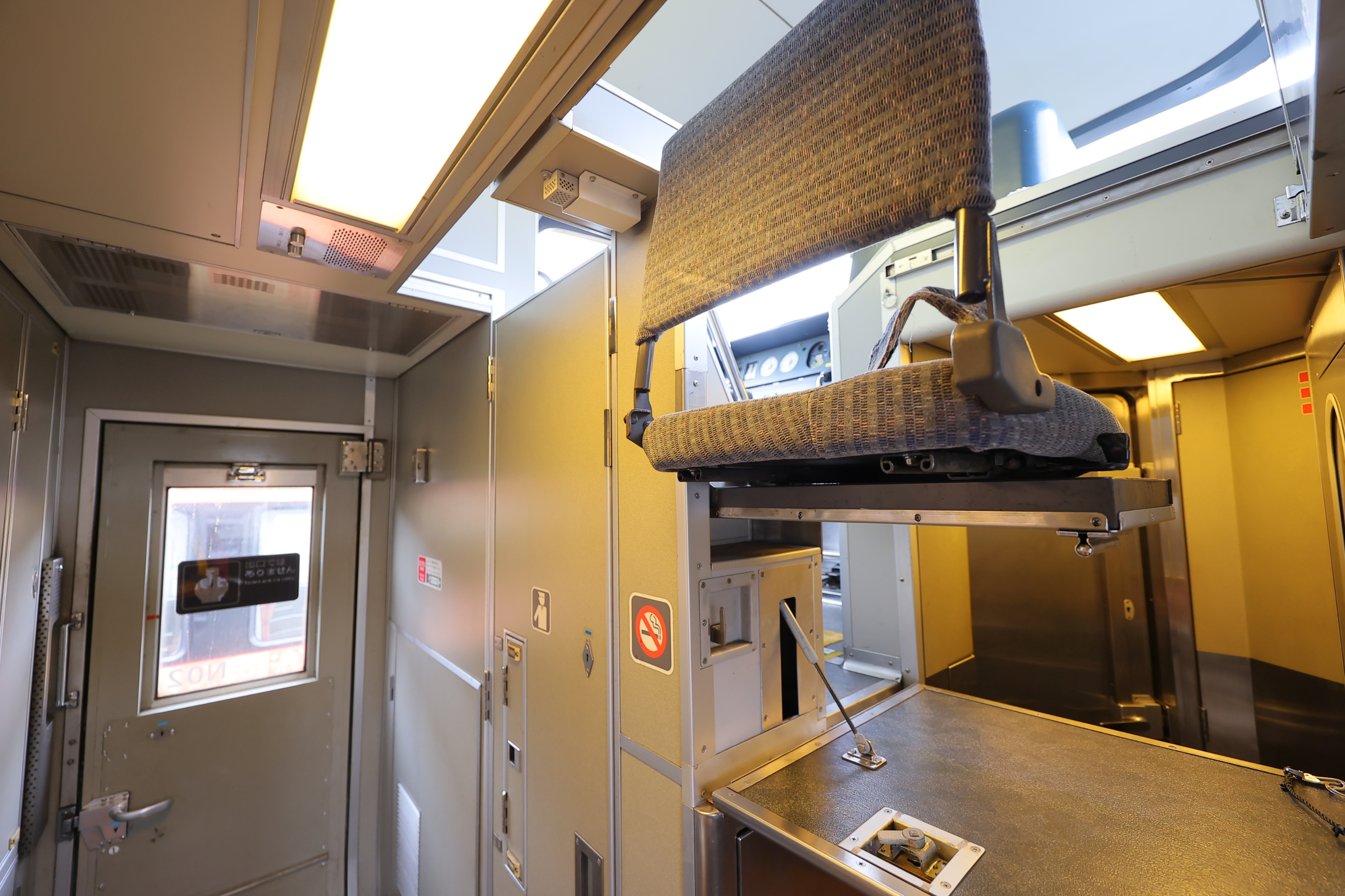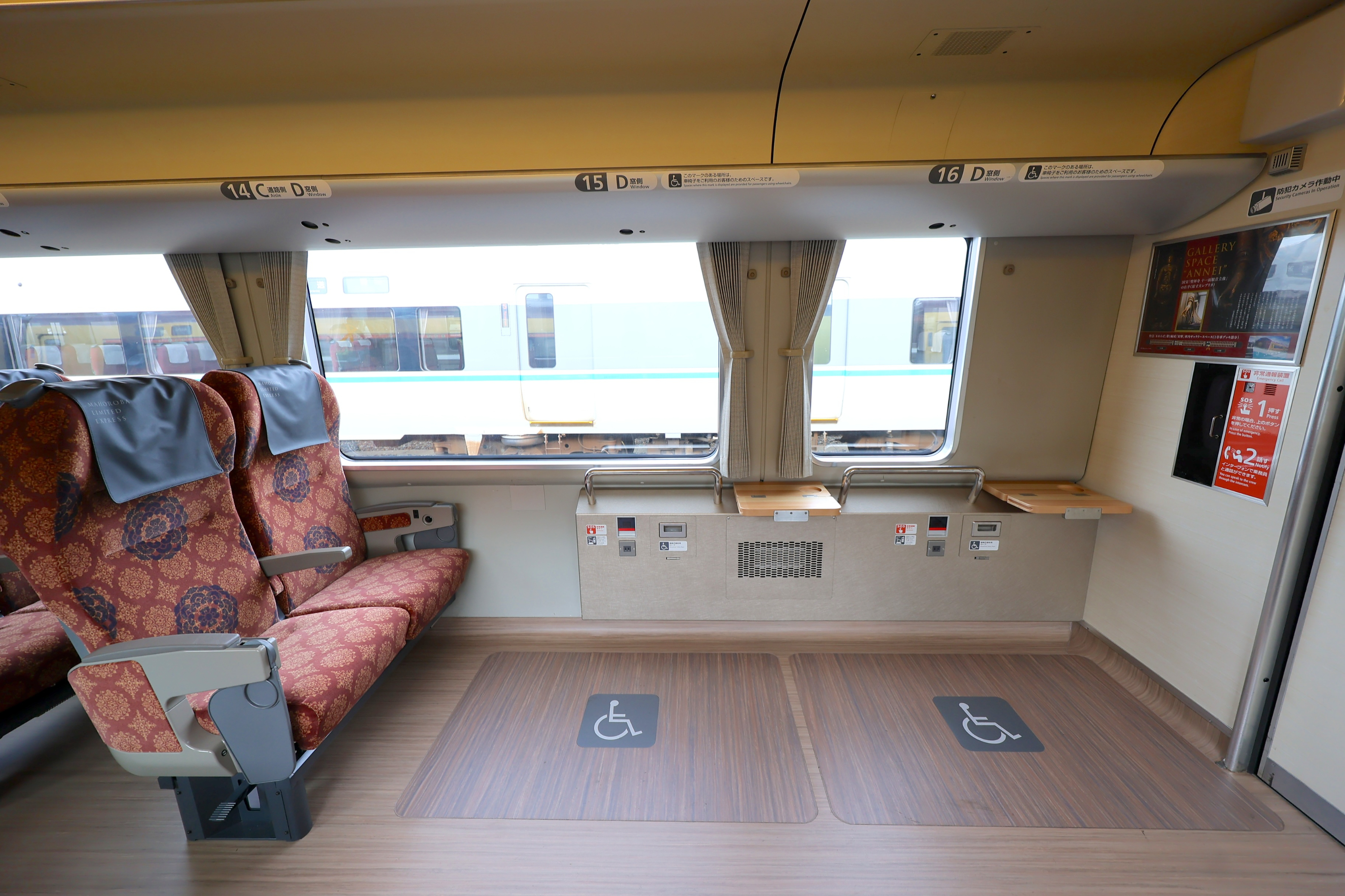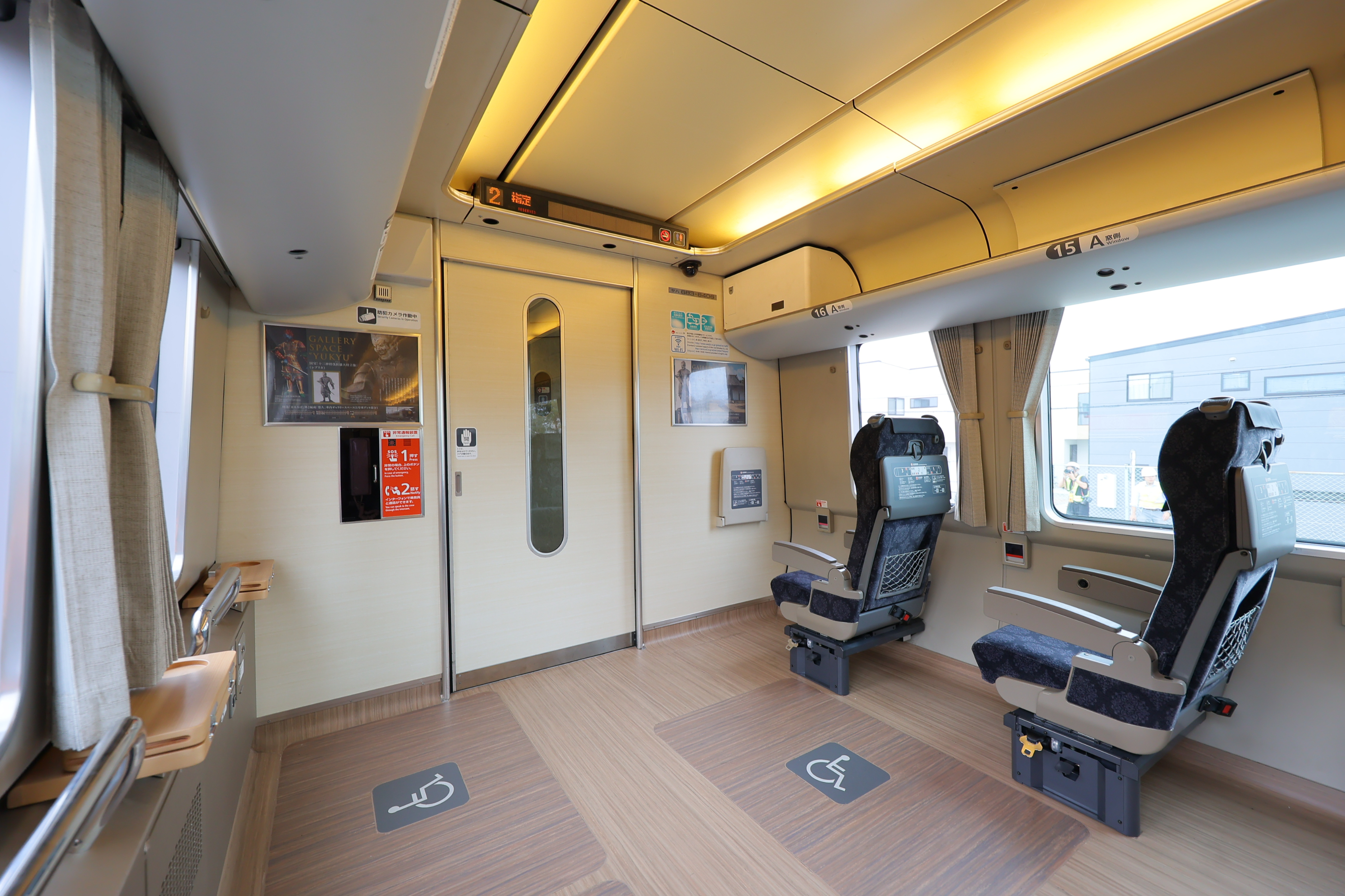 以前の臨時特急「まほろば」は、特急「くろしお」などで使用の287系でしたが、定期運行化にあわせ683系をリニューアルした専用編成に。車両の内外装に奈良の魅力を表現、車内 Wi-Fi・全席にコンセント設置、デッキにはミニギャラリーを設置しています。