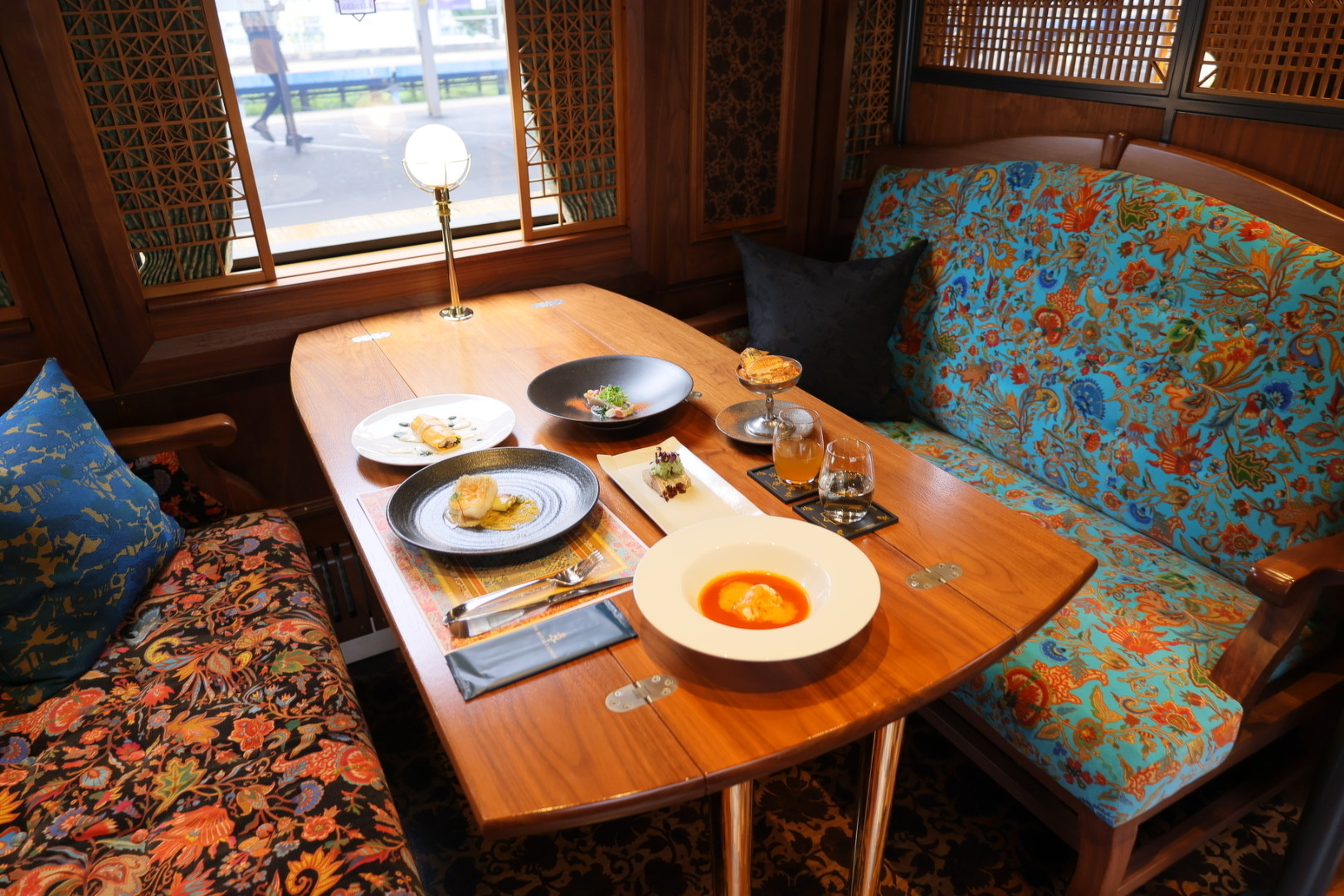 東海道・富士クルーズトレインでは、富士山の景観、宿場町の町並みや茶畑、松並木、文化や伝統と歴史を感じながら車窓を楽しめるほか、東海エリアの食材を最大限に活かした料理などを味わえます。