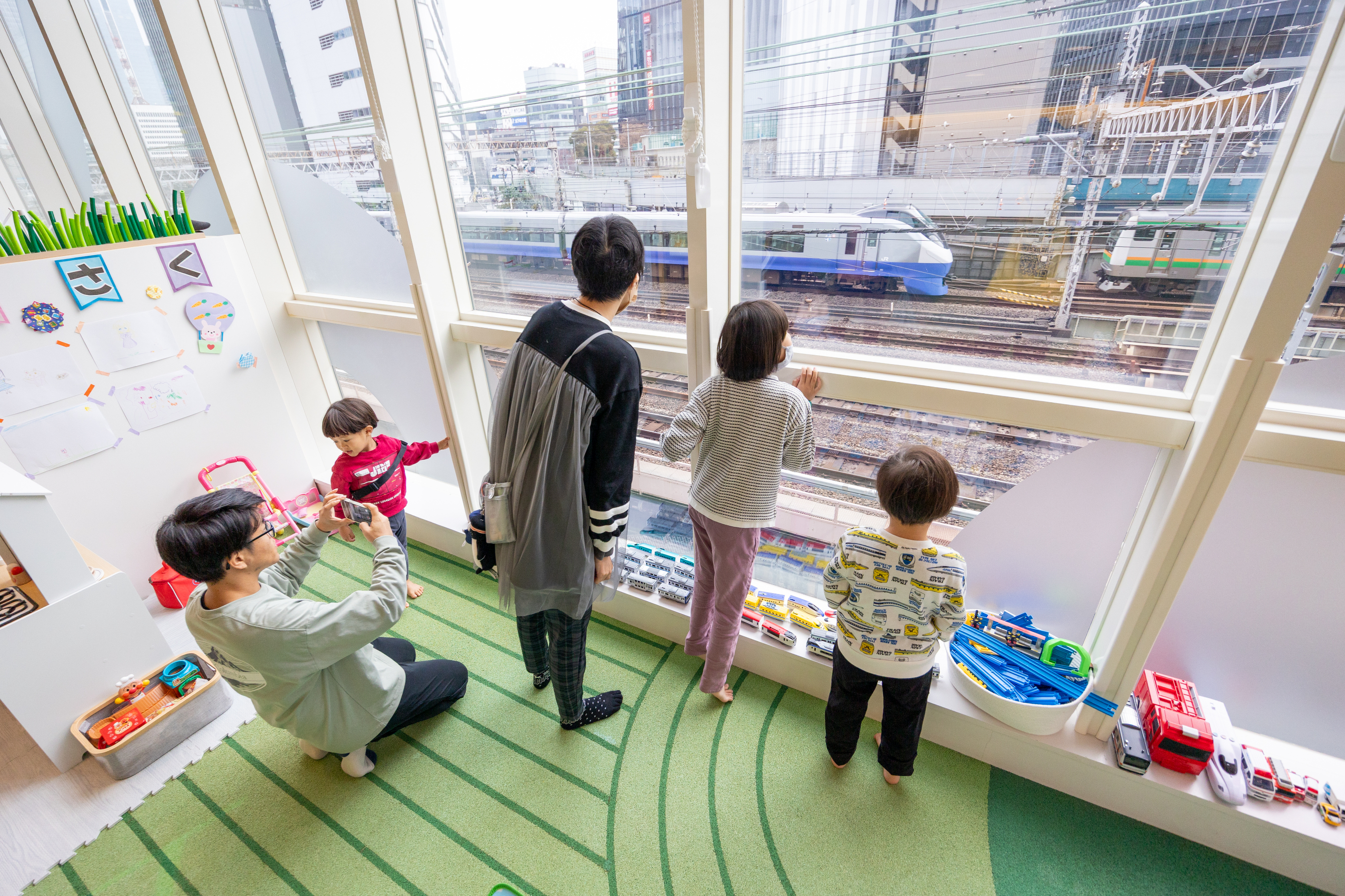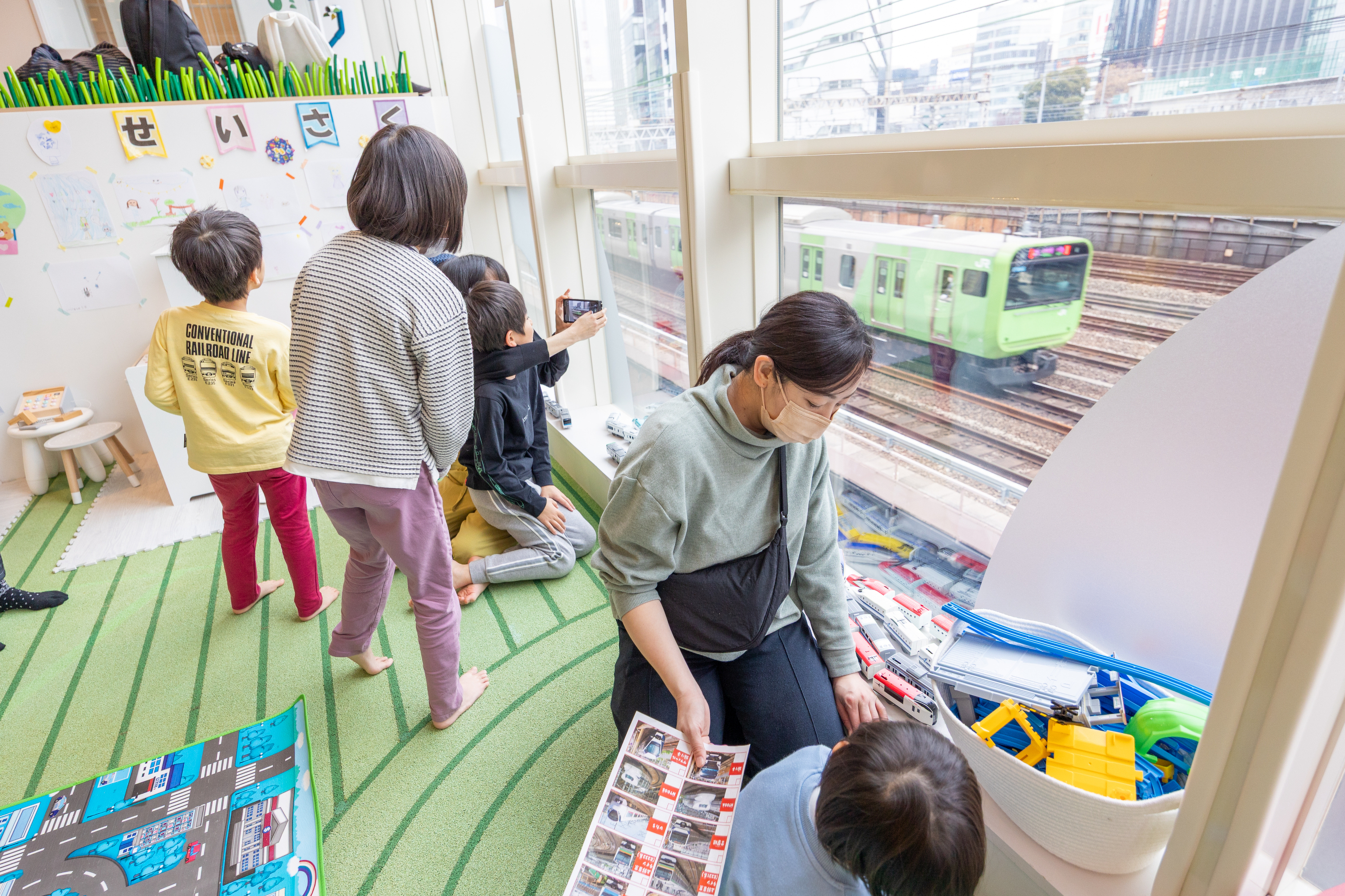 東京都の有楽町にある一時預かり型屋内遊び場「ANO-NE Kids Club」。普段は子どもだけが入れる屋内遊び場を貸し切って、親子で楽しめる『鉄道イベント』を開催しました。