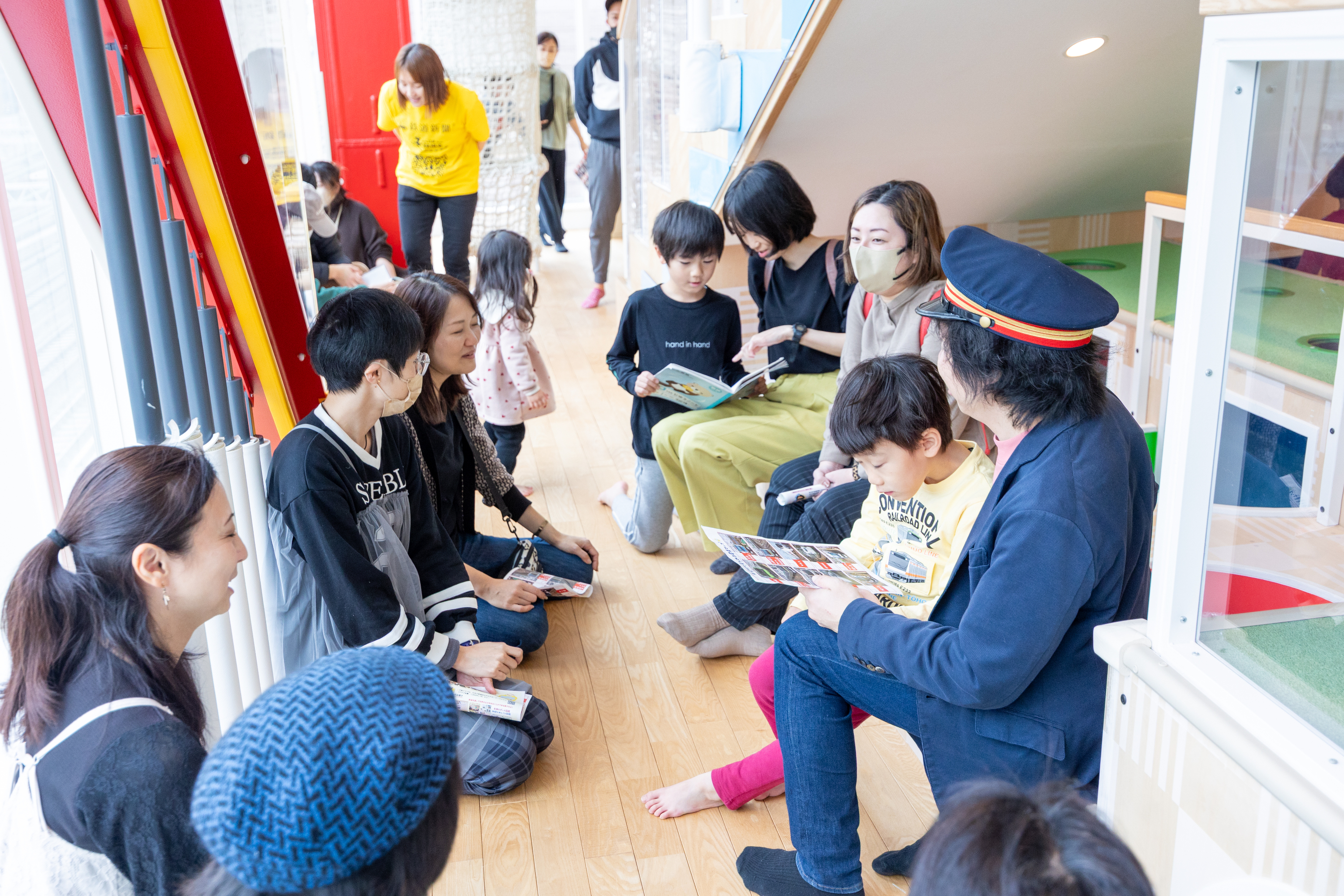 こどもたちは、会場で思いっきり走り回ったり、『学習シート』を片手に鉄道を観察、クイズを楽しみました。パパママもこどもたちと楽しんだり、福岡えきちょうと座談会をしたり、パパママ同士で交流を楽しみました。
