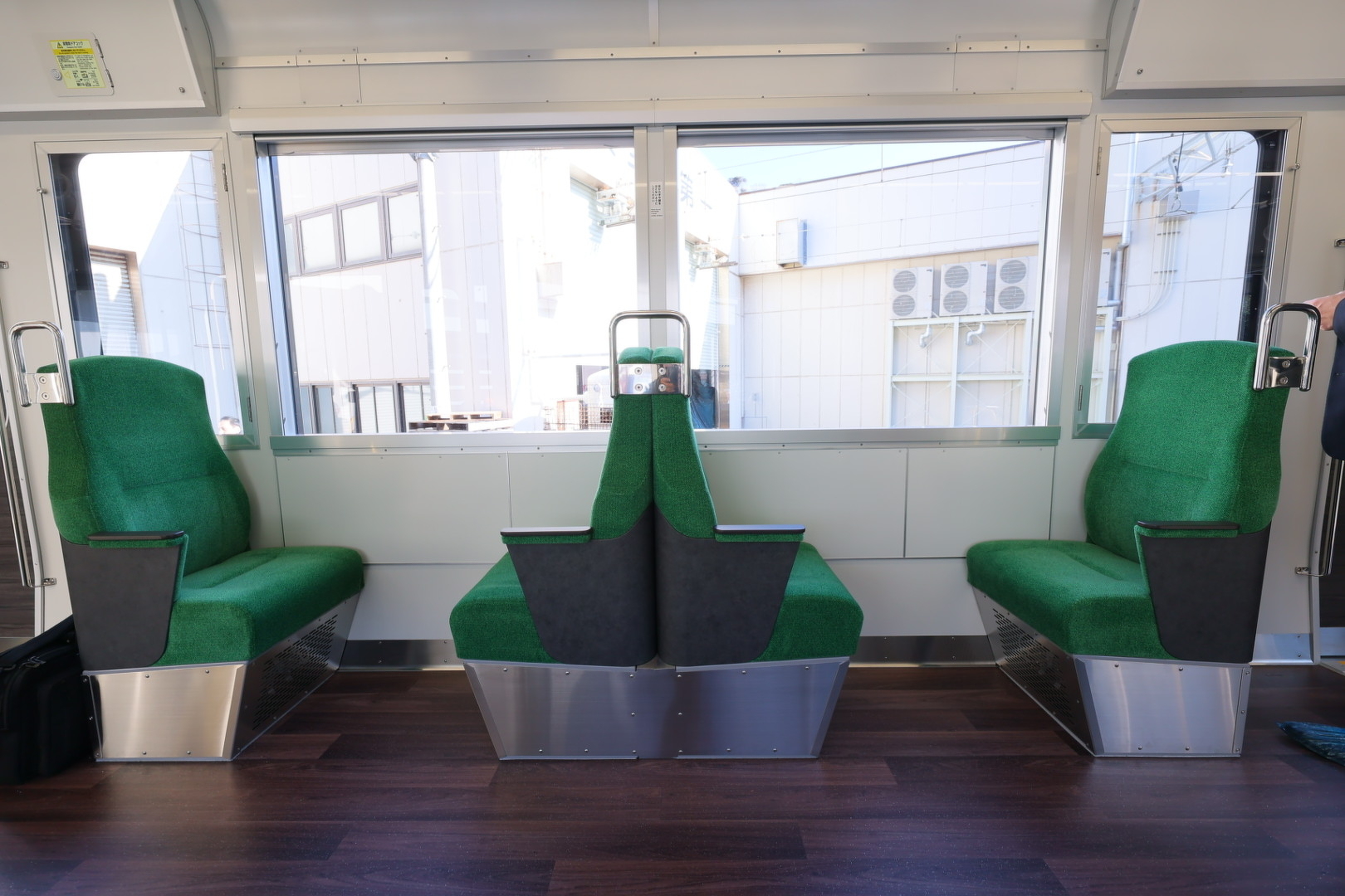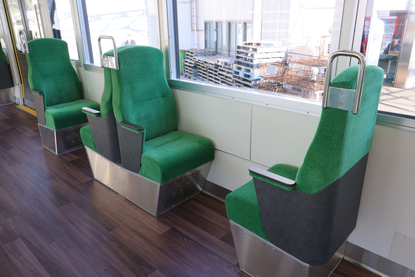 山側はロングシート、海側はクロスシート(1列ボックスシート)とすることで、座っている方の視線が海側を向く座席配置となっています。