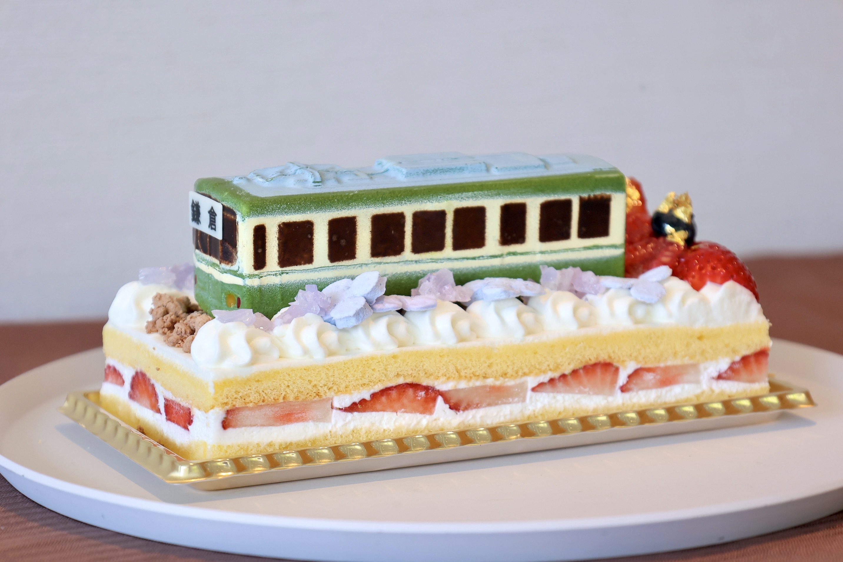 江ノ電をモチーフにした見た目も楽しいケーキも誕生。1日1台限定、ホテル内ラウンジで予約販売されます。