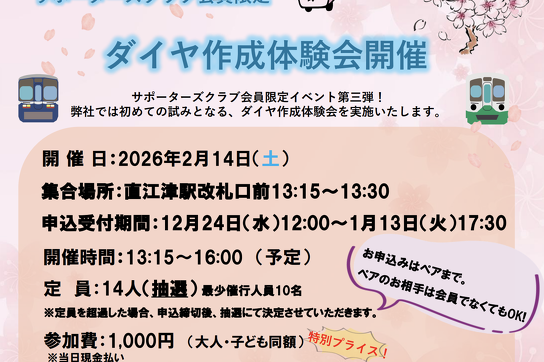 2/14【えちごトキめき鉄道】トキてつサポーターズクラブ会員限定「ダイヤ作成体験会」イベント開催