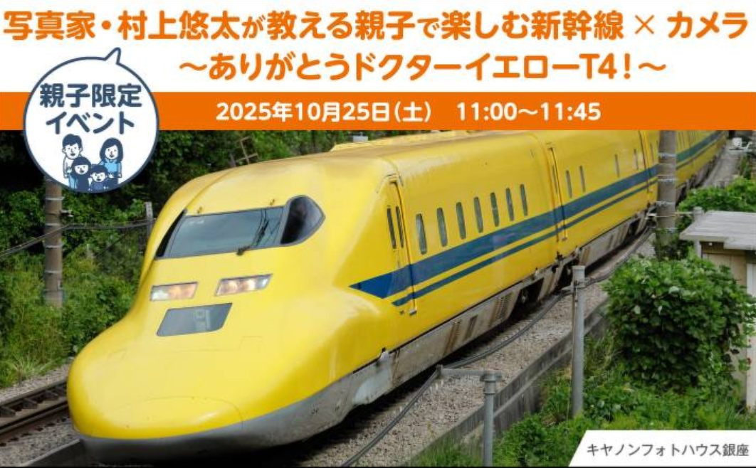 子鉄イベント 小学生対象 関東エリア 未就学児対象 鉄道イベント情報 10/25 親子で楽しむ新幹線×カメラ トークイベント開催へ 公開 2025.10.09 Posted by 鉄道新聞 日程など 日時:2025年10月25日(土) 11:00~11:45 場所:キヤノンフォトハウス銀座 申込:必要(申込1組につき、大人1名 + 5~12歳 1名) 詳しくはこちら(公式リンク) Canonホームページ