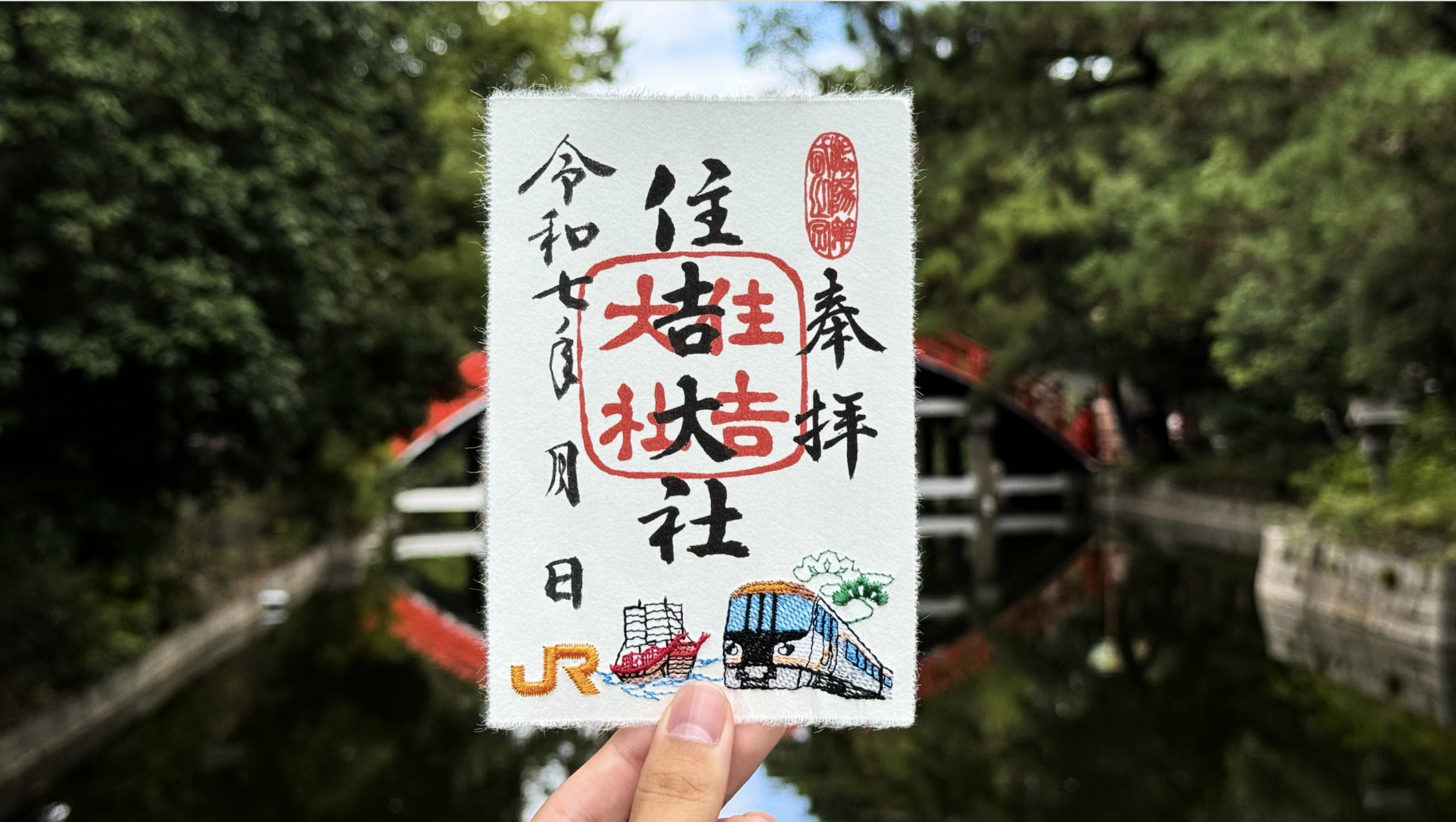 EX旅先予約【住吉大社×JR東海】EX限定デザイン『遣唐使船&HC85系 刺繍御朱印』授与