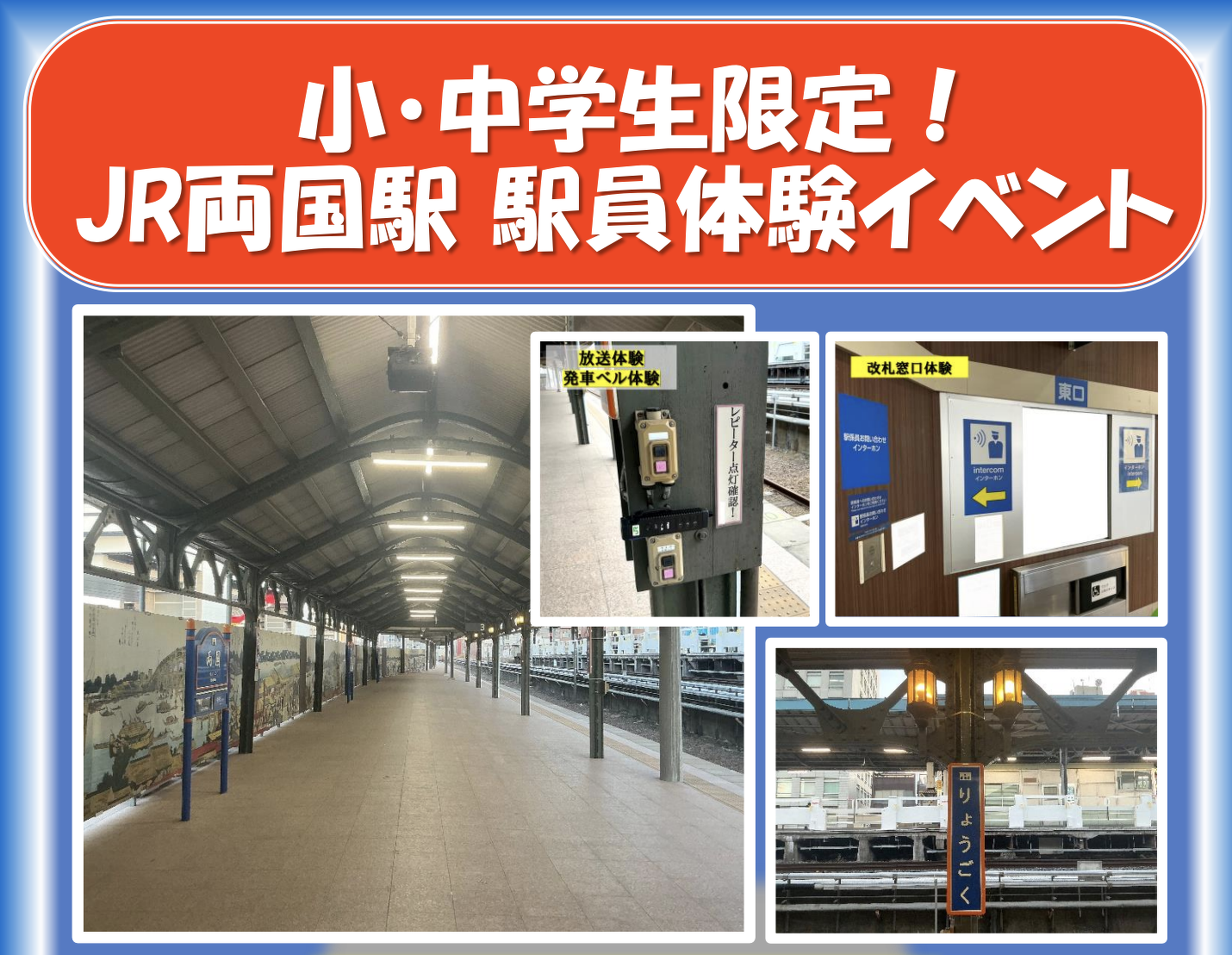子鉄イベント 小学生対象 中学生対象 関東エリア 子鉄イベント情報 1/10〜12【JR東日本】小・中学生限定! JR両国駅 駅員体験イベント開催 公開 2025.12.25 Posted by 鉄道新聞