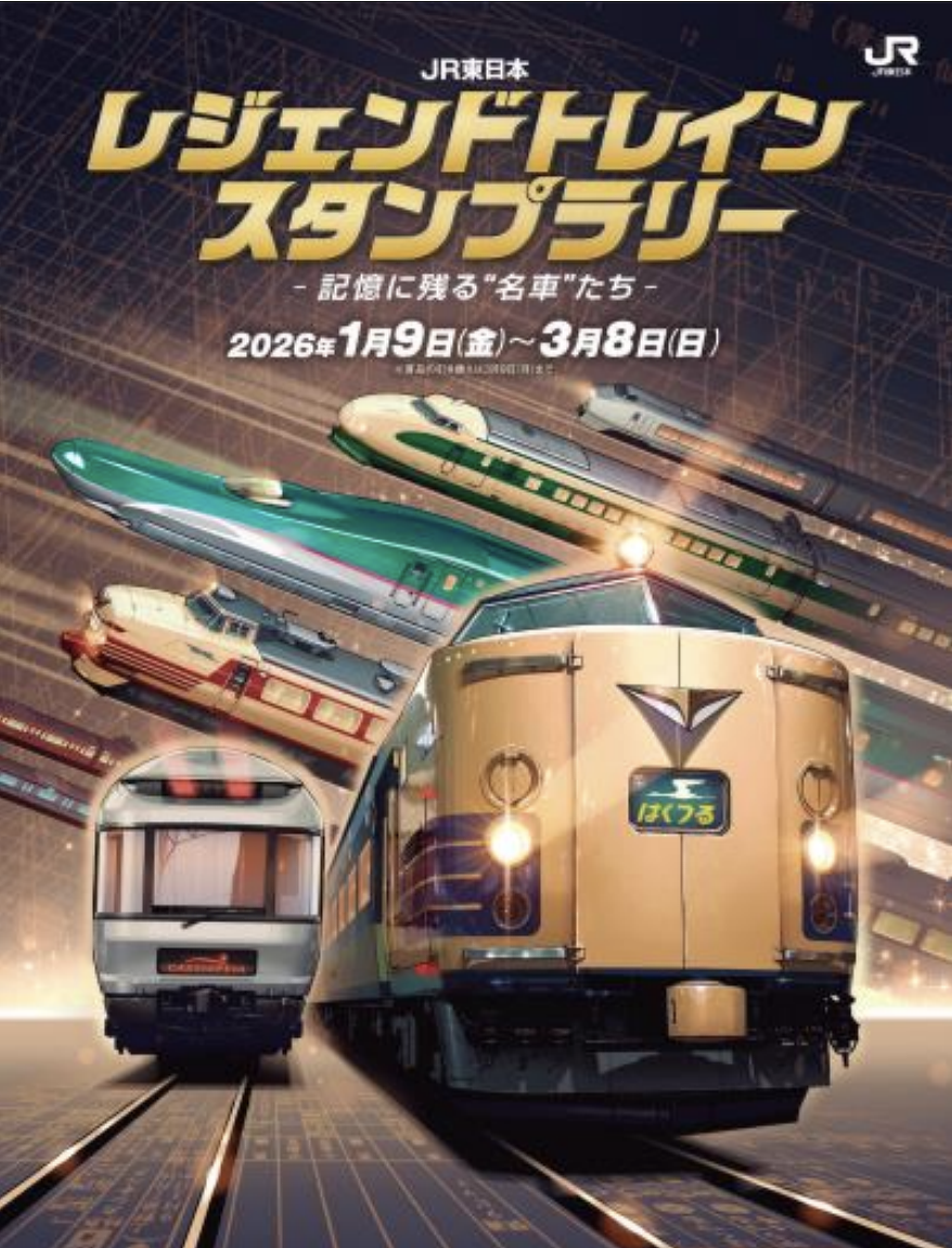 子鉄イベント 小学生対象 未就学児対象 関東エリア 子鉄イベント情報 1/9〜3/8【JR東日本】レジェンドトレインスタンプラリー ー記憶に残る“名車”たちー を開催 公開 2026.01.22 Posted by 鉄道新聞