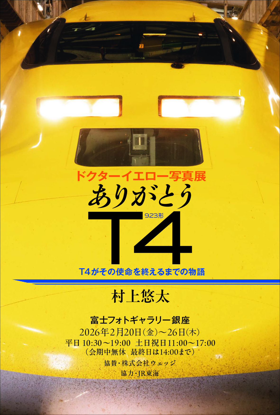 富士フォトギャラリー銀座、村上悠太ドクターイエロー写真展「ありがとう T4」開催へ