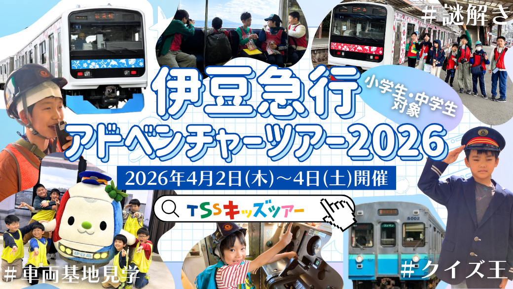子鉄イベント 小学生対象 中学生対象 鉄道イベント情報 4/2〜4【伊豆急行】アドベンチャーツアー2026開催 公開 2026.03.18 Posted by 鉄道新聞 日程など 日時:2026年4月2日(木)~4月4日(土)2泊3日 出発場所 : 横浜駅/あざみ野駅/二子玉川駅 開催場所 : 伊豆急行本社/車両基地 /下田海中水族館ほか 申込:必要 詳しくはこちら(公式リンク) 伊豆急行ニュースリリース