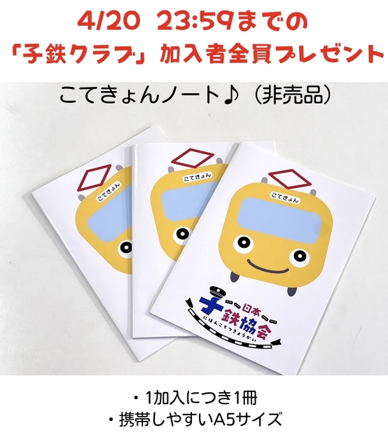 【新年度キャンペーン】2026.4/1〜4/20 23:59までに子鉄クラブ(1,000円/月)新規加入者【全員】に、こてきょんノート(A5)をプレゼント!