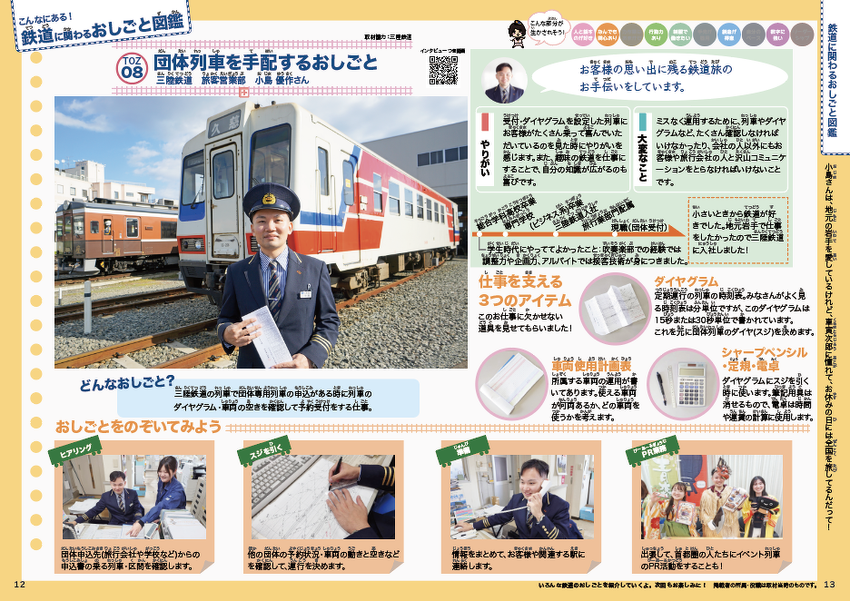 おしごと図鑑は、「団体列車を手配するおしごと」編。岩手県の三陸鉄道で団体専用列車を手配している小島 優作さんに独占インタビュー!